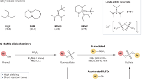 Sulfur fluoride exchange (SuFEx) is a click reaction used to rapidly synthesize and discover functional molecules. In this Primer, Homer et al. discuss the essential elements of SuFEx operation, catalysis and SuFExable connective hubs and explore applications of SuFEx in drug development, polymer science and biochemistry.