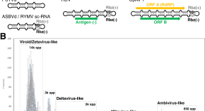RNA viruses are defined by linear RNA genomes encoding an RNA-dependent RNA polymerase, while viroid-like elements consist of small, single-stranded, circular RNA genomes that, in some cases, encode self-cleaving catalytic RNAs. Here, the authors identify over 20,000 candidate viroid-like elements, and show that infectious agents of fungi display hybrid features of viroid-like RNAs and RNA viruses.