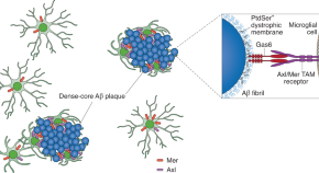 • The TAM receptor kinases Axl and Mer are critical for microglial recognition and clearance of accumulating amyloid in transgenic models of Alzheimer’s disease.