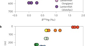 Mercury enters marine food webs in the form of microbially generated monomethylmercury. An analysis of the mercury isotopic composition of nine species of North Pacific fish suggests that microbial production of monomethylmercury below the surface mixed layer contributes significantly to the mercury contamination of marine food webs.