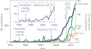 At present, magneto-, electro- and mechanocaloric effects are intensely investigated as the basis for possible cooling applications. This Review discusses and compares the three effects from both a fundamental and an applied perspective, with an emphasis on the experimental methods used to measure them.