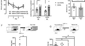 Calcitonin gene-related peptide (CGRP) causes anxiety by modulating the HP1γKLF11-MAOB pathway, depleting dopamine in the dorsal hippocampus, and increasing MAOB while reducing dopamine levels, leading to anxiety-like behaviors.