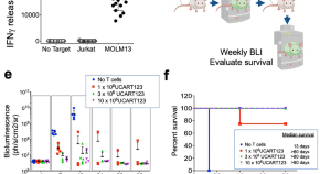 • CD123, the interleukin-3 receptor alpha chain, is aberrantly expressed in acute myeloid leukemia blasts and leukemia stem cells. Here the authors report the design and characterize the anti-tumor activity of allogeneic CD123-targeted CAR-T cells as a therapeutic approach for acute myeloid leukemia.