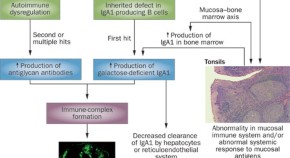 IgA nephropathy is a common cause of glomerulonephritis. The presence of aberrantly galactosylated IgA1 and production of glycan-specific antibodies initiates mesangial deposition of immune complexes and subsequent tubulointerstitial injury. In this Review, Kar Neng Lai summarizes the latest findings in the pathogenesis of IgA nephropathy, including genetic factors and mesangial-derived mediators that lead to podocyte and tubulointerstitial injury via mesangio–podocytic–tubular crosstalk.