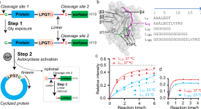Head-to-tail macrocyclization of proteins and peptides can increase their structural stability, however, potential polymerization can lead to reduced yields. Here, the authors report the engineering of self-cyclizing ‘autocyclase’ proteins to generate macrocyclic peptides and proteins with favorable reaction kinetics for suppressing polymerization.