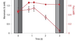 Precambrian banded iron formations contain thin alternating layers of iron- and silica-rich minerals. Microbial culture experiments show that these alternations could be caused by changes in the relative dominance of microbial iron oxidation and abiotic silica precipitation driven by fluctuating ocean temperature.