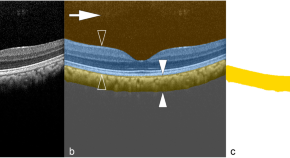 Maloca et al. implement convolutional neural network (CNN) to automatically segment OCT images obtained from cynomolgus monkeys. The results are compared to annotations generated by human graders. The ambiguity in ground truth had noteworthy impact on machine learning results, which could be visualized.