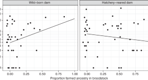 Stocking of hatchery produced fish is widely used to supplement wild fish populations. Here, the authors show that supplementary stocking can unintentionally favour introgressed individuals with domestic genotypes and compromise the fitness of a wild population of Atlantic salmon.