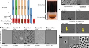Pezhman Mohammadi et al. report the design of spidroin-inspired engineered proteins that separate from solution into coacervates with distinct properties depending on protein or salt concentration. These coacervates serve as intermediate assembly steps for self-fusing, adhesive fibers with useful biomechanical properties.
