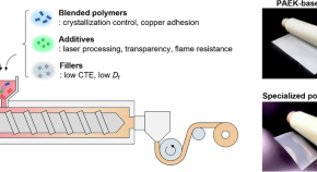 This focus review describes two types of thermoplastic films developed via formulation design technology for mmWave communication. The first type is a crystalline polyaryletherketone (PAEK)-based film, which is improved with plate-like fillers and miscible noncrystalline polymers. This film exhibits low dielectric properties, heat resistance, low thermal expansion, and excellent multilayer processing capabilities. The second type is a specialized polyolefin resin-based film, which achieves ultralow dielectric properties comparable to those of PTFE and combines excellent copper adhesion with customizable functionalities such as laser processability, transparency, and flame retardancy.
