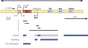 Reprogramming of X-chromosome inactivation during the acquisition of pluripotency is accompanied by repression of Xist, the trigger of X-inactivation, and by upregulation of its antisense counterpart, Tsix. In undifferentiated embryonic stem cells (ESCs), key transcription factors that support pluripotency repress Xist transcription. These authors show that upregulation of Tsix in ESCs depends on a different subset of pluripotency factors. Therefore, two distinct ESC-specific complexes couple reprogramming of X-inactivation to pluripotency.