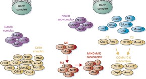 The kinetochore attaches the centromeric region of chromosomes to spindle microtubules, allowing equatorial chromosome segregation during mitosis. Proteomic analyses suggest that the kinetochore is a supramolecular complex containing more than 65 proteins that surpasses the size of a ribosome. From within this complex web, stable protein sub-complexes have been extracted, revealing the building blocks for kinetochore assembly.