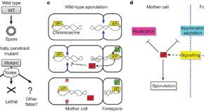 Individuals with exactly the same genetic make-up can differ from one another in their development and resulting phenotype when the genome contains a mutation — a phenomenon called 'partial penetrance'. Exploration of the genetic and stochastic factors controlling the proportion of abnormal 'twin' spores in mutant populations of the bacterium Bacillus subtilus now reveals how mutations affecting DNA replication and cell division may act in synergy to significantly increase the penetrance of twin sporulation.