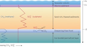 Submarine permafrost thaw in the Arctic has been suggested as a trigger for the release of large quantities of methane to the water column, and subsequently the atmosphere — with important implications for global warming. Now research shows that microbial oxidation of methane at the thaw front can effectively prevent its release.
