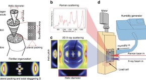 • Water is an important component of collagen in tendons, bone and extracellular matrix, but its role in the mechanical function of protein is poorly understood. Here, the authors study the effects of osmotic pressure on contraction in collagen, suggesting that collagen could function as a mechanical actuator.
