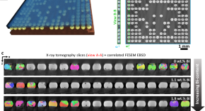 Tomographic volumetric printing (TVP) is considered as a fast and auxiliary-free 3D printing technique, but control of internal mechanical properties remains less investigated for TVP. Here, the authors show that wavelength-sensitive photoresins can be cured using visible and UV sources simultaneously in a TVP setup to generate internal mechanical property gradients with high precision.