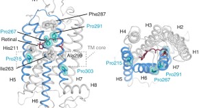 • Solid-state NMR analyses reveal that the free backbone carbonyl groups associated with proline residues in the transmembrane helices play a key role in mediating rhodopsin activation.