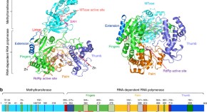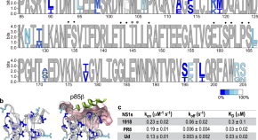 Influenza A virus (IAV) nonstructural protein 1 (NS1) is a multifunctional virulence factor that interacts with several host factors such as phosphatidylinositol-3-kinase (PI3K). NS1 binds specifically to the p85β regulatory subunit of PI3K and subsequently activates PI3K signaling. Here, Kim et al. show that functionally near-neutral, strain-specific NS1 mutations lead to variations in binding kinetics to p85β exhibit long-range epistatic interactions. Applying NMR they provide evidence that the structural dynamics of the NS1 hydrophobic core have evolved over time and contributed to epistasis.