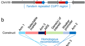 Gene dosage-based expression upregulation suffers from instability and random gene integration. Here, the authors report HapAmp, a method that uses haploinsufficiency as evolutionary force to drive in vivo gene amplification, and demonstrate its applications in protein and biochemical production in yeast.