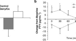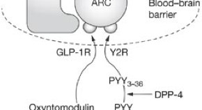 Oxyntomodulin and peptide tyrosine–tyrosine are gut hormones that act as satiety signals and decrease food intake; oxyntomodulin may also increase energy expenditure. Studies in humans show these effects in normal-weight and overweight volunteers; these peptides and their derivatives are, therefore, potential therapies for conditions such as obesity.