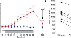 Functional magnetic resonance imaging is used to examine brain areas whose activity correlates with subsequent feeding behaviour under different satiety states evoked by intravenous peptide YY3–36 (PYY), administration. Under high PYY conditions, (mimicking the fed state) changes in orbitofrontal cortex activation better predicted subsequent feeding, whereas in low PYY conditions, hypothalamic activation predicted food intake.