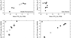 Tropical sea surface temperatures during the Palaeozoic era were reconstructed from fossil shells using the 'carbonate clumped isotope' method, which, unlike the oxygen isotope method, does not require independent estimates of the isotopic composition of seawater. Estimates indicate that carbon dioxide concentrations and surface temperatures were closely coupled during the Palaeozoic era, supporting the view that variations in atmospheric carbon dioxide concentration led to significant variations in global temperature.