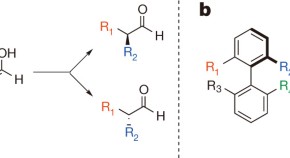 • An enantioselective reaction involving a molecule with two axes of stereochemical consequence produces four stereoisomers, and rather than racemizing as the system approaches equilibrium, one of the diastereomeric pairs drifts spontaneously to a higher enantiomeric ratio.