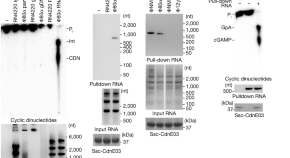 Staphylococcus CdnE03 cyclase recognizes structured RNA molecules produced by staphylococcal phages, triggering cyclic oligonucleotide production and, thereby, bacterial cell death—a mechanism of antiviral defence conserved across domains of life.