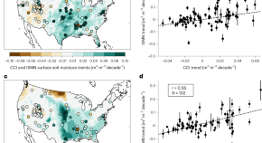 Climate model simulations and aridity indices suggest decreasing summertime surface soil moisture in the continental USA due to anthropogenic climate change, but observations from 2011 to 2020 reveal positive trends across 57% of the region. Using a two-layer land surface model, this study attributes short-term soil moisture changes mainly to internal precipitation variability, and long-term trends to uncertain precipitation alterations.