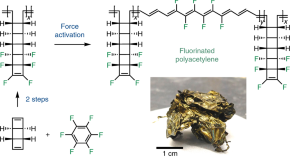 Fluorinated polyacetylene has typically proven to be inaccessible using traditional polymer synthesis, but there is much interest in its predicted properties. Now, a mechanochemical unzipping strategy has succeeded in the synthesis of a gold-coloured, semiconducting fluorinated polyacetylene with improved stability in air compared to polyacetylene.