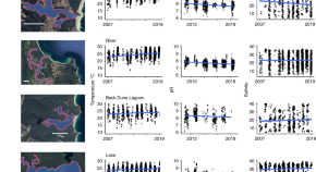 Estuaries are diverse and important aquatic ecosystems, yet we lack information on their response to climate change. Here, the authors show that east Australian estuaries are warming and acidifying faster than predicted by ocean or atmospheric models; a trend that is magnified in shallow estuaries.
