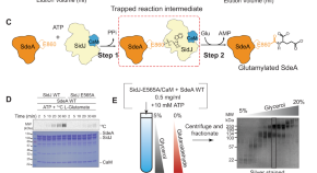 Legionella pneumophila (LP) employs the metaeffector SidJ to suppress the toxicity of SdeA and other LP SidE effector family members by catalysing the glutamylation of the catalytic Glu residue. Here, the authors present the cryo-EM structures of SidJ in complex with SdeA in two different states, which together with mutagenesis analysis provide insights into the substrate recognition and the mechanism of protein glutamylation by SidJ.