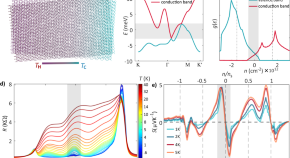 Twisted double bilayer graphene has recently become a popular system to investigate strongly correlated phenomenon where the twist angle is a key degree of freedom. Here, the authors investigate thermopower in twisted double bilayer graphene finding a large enhancement of thermopower and magnetoresistance within a small magnetic field near the charge neutrality point, indicating a compensated semimetallic state.