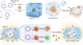 Immune rejection of allografts is a major issue which limits interventional strategies. Here, the authors report on the use of vesicles presenting immunosuppression markers entrapped within hydrogels to provide a local immuno-protective environment for allogenic transplantation.