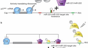• Pumilio proteins PUM1 and PUM2 are shown to regulate microRNA-dependent gene silencing by induction of a conformational switch in the 3′ untranslated region of p27 mRNA. This conformational change is required for efficient microRNA-mediated repression of this cell-cycle regulator in rapidly proliferating cells.