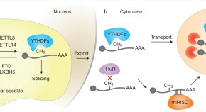 • Emerging data support that RNA methylation plays important roles in RNA processing and metabolism. The methyltransferases Mettl3 and Mettl14 are shown to catalyse N6-methyladenosine (m6A) RNA modification in embryonic stem cells (ESCs). This m6A modification controls RNA metabolism and functions to destabilize mRNAs encoding developmental regulators to help sustain ESC self-renewal.