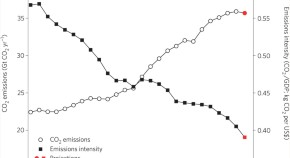 Rapid growth in global CO2 emissions from fossil fuels and industry ceased in the past two years, despite continued economic growth. Decreased coal use in China was largely responsible, coupled with slower global growth in petroleum and faster growth in renewables.