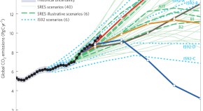 The latest carbon dioxide emissions continue to track the high end of emission scenarios, making it even less likely global warming will stay below 2 °C. A shift to a 2 °C pathway requires immediate significant and sustained global mitigation, with a probable reliance on net negative emissions in the longer term.