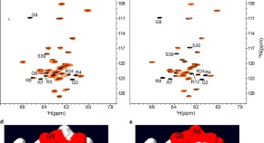 NMR structure of an HIV-1 Rev peotide complexed with either the Rev binding elements or an RNA aptamer show that the helical peotide inserts into a widened major groove. However, significant local differences are observed.