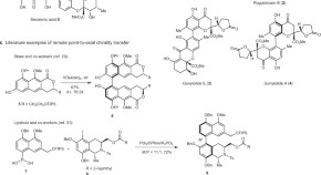A seven-step total synthesis of the axially chiral, dimeric tetrahydroxanthone natural product rugulotrosin A is described. The synthesis employs a one-pot Suzuki coupling/dimerization to generate the 2,2′-biaryl linkage using point-to-axial chirality transfer. Computational studies are described that rationalize the observed atropselectivity.