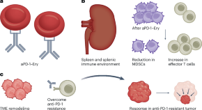 Strategies are needed to overcome resistance to immune checkpoint inhibitors in patients with cancer. An erythrocyte–antibody conjugate for the delivery of anti-PD-1 is now shown to favorably reshape anti-tumor immune responses, with promising safety and efficacy data from a phase 1 trial in patients with advanced anti-PD-1-resistant solid tumors.