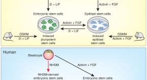 A study revealing that pluripotent stem cells (EpiSCs) can be derived from the late epiblast layer of post-implantation mouse and rat embryos. To achieve this, a chemically defined, activin-containing culture medium known to be sufficient for long-term maintenance of human embryonic stem cells is used. These findings will help to understand the biological provenance of human embryonic stem cells.