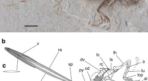 Fossils of Cretaceous birds with feathers are rare and known mostly from China. Here, the authors show an enantiornithine bird from the Lower Cretaceous of Brazil with a fully articulated skeleton and rachis-dominated tail feathers, which has implications for our understanding of feather evolution.