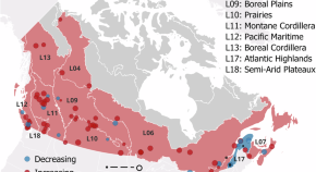 Strong correlation between increased chlorophyll and climate variables after 1966 suggests continental-scale alterations to lake primary production due to accelerated warming, solar irradiance, and human impacts, according to high-resolution imaging of dated cores from 80 lakes across Canada.