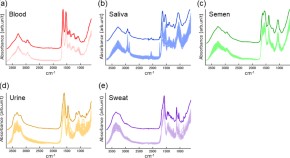 Bloodstain analysis is an important forensic tool but the aging of blood samples is poorly understood. Here the kinetics of bloodstain aging are examined by Raman spectroscopy and multivariate resolution analysis, providing both mechanistic insight and a reference for real samples.