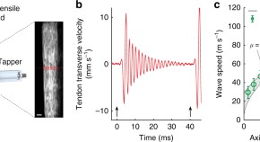 Mechanical forces exerted on tendons during locomotion cannot be readily measured without invasive methods. Here, the authors develop a non-invasive wearable device to track tendon loads by measuring shear wave propagation speed, and demonstrate its use during dynamic human movements.