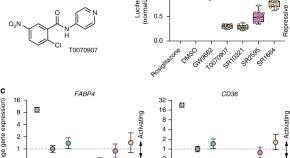 The nuclear receptor PPARγ regulates insulin sensitivity and is the molecular target of anti-diabetic drugs. Here, Hughes et al. show demonstrate binding of synthetic PPARγ agonists to a previously unknown binding site within PPARγ and show this affects structure and function of the receptor.