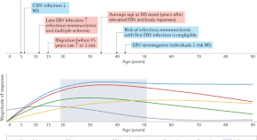 Epstein–Barr virus infects most of the human population and, depending on other risk factors, contributes to the development of multiple sclerosis. In this Review, Soldan and Lieberman discuss supporting evidence and potential mechanisms that link Epstein–Barr virus to multiple sclerosis.