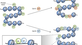New genomic analyses indicate that pioneer transcription factors can sample a diverse repertoire of common binding sites among different cell types and become enriched where they cooperate with other factors specific to each cell. Pioneer-factor binding is mechanistically separate from, and is necessary for, subsequent phenomena of chromatin opening and epigenetic memory in vivo.