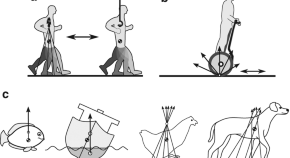 • The emergence of bipedalism in humans is considered to be an evolutionary challenge. In this study, however, the authors show that humans, dogs and chickens create a virtual pivot point above their centre of mass during walking, thereby mimicking an external support.